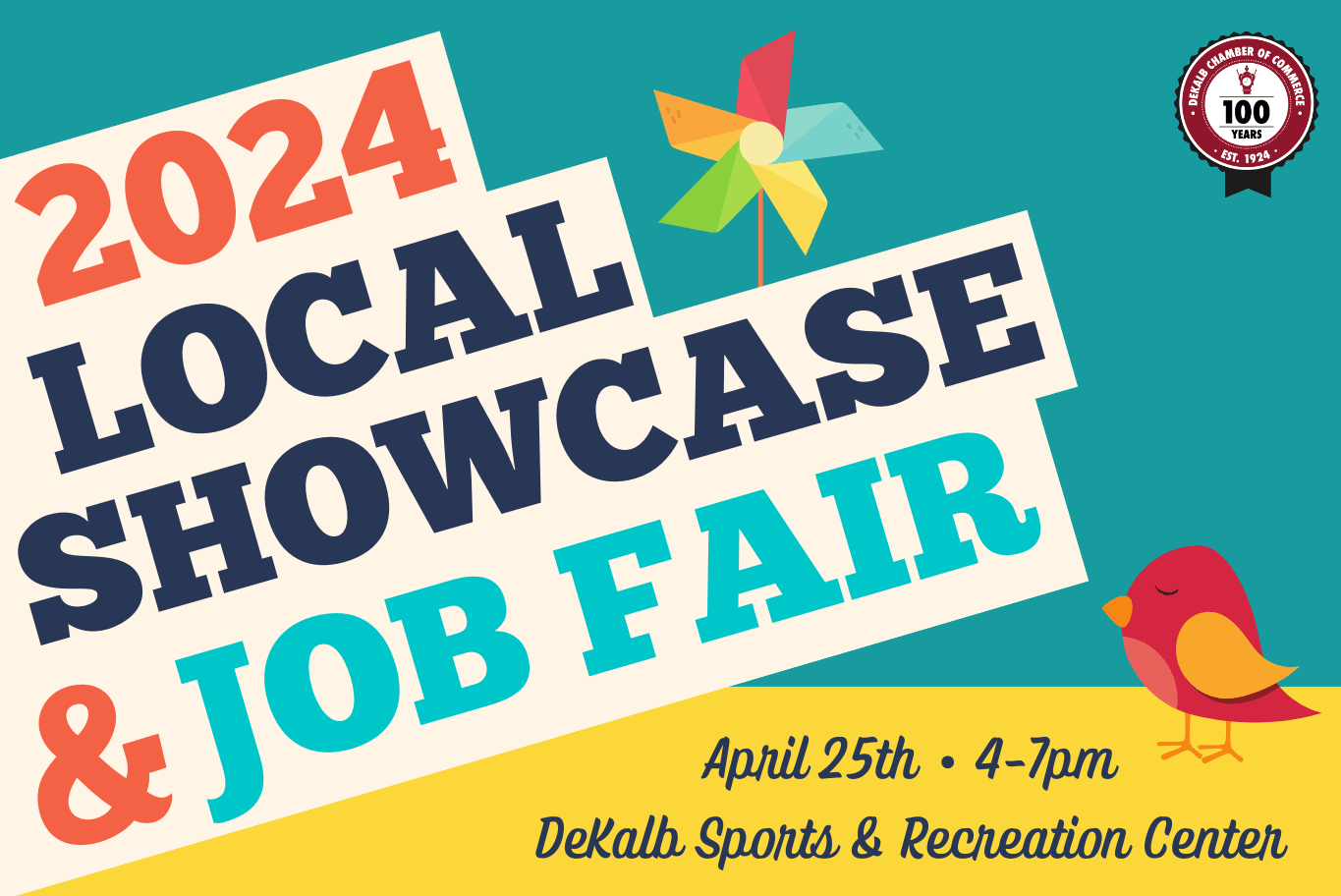 Discover what's in your community at the 2024 Local Showcase & Job Fair at the DeKalb Sports & Recreation Center on Thursday, April 25th from 4-7pm! Meet over 80 businesses and organizations in your community as they distribute valuable information, exciting giveaways, and provide activities for all ages. This event is also an opportunity for job seekers! Participating vendors with open positions will be actively seeking new hires. Whether you're a seasoned community member or a newcomer, come together to celebrate our community! Admission is free.