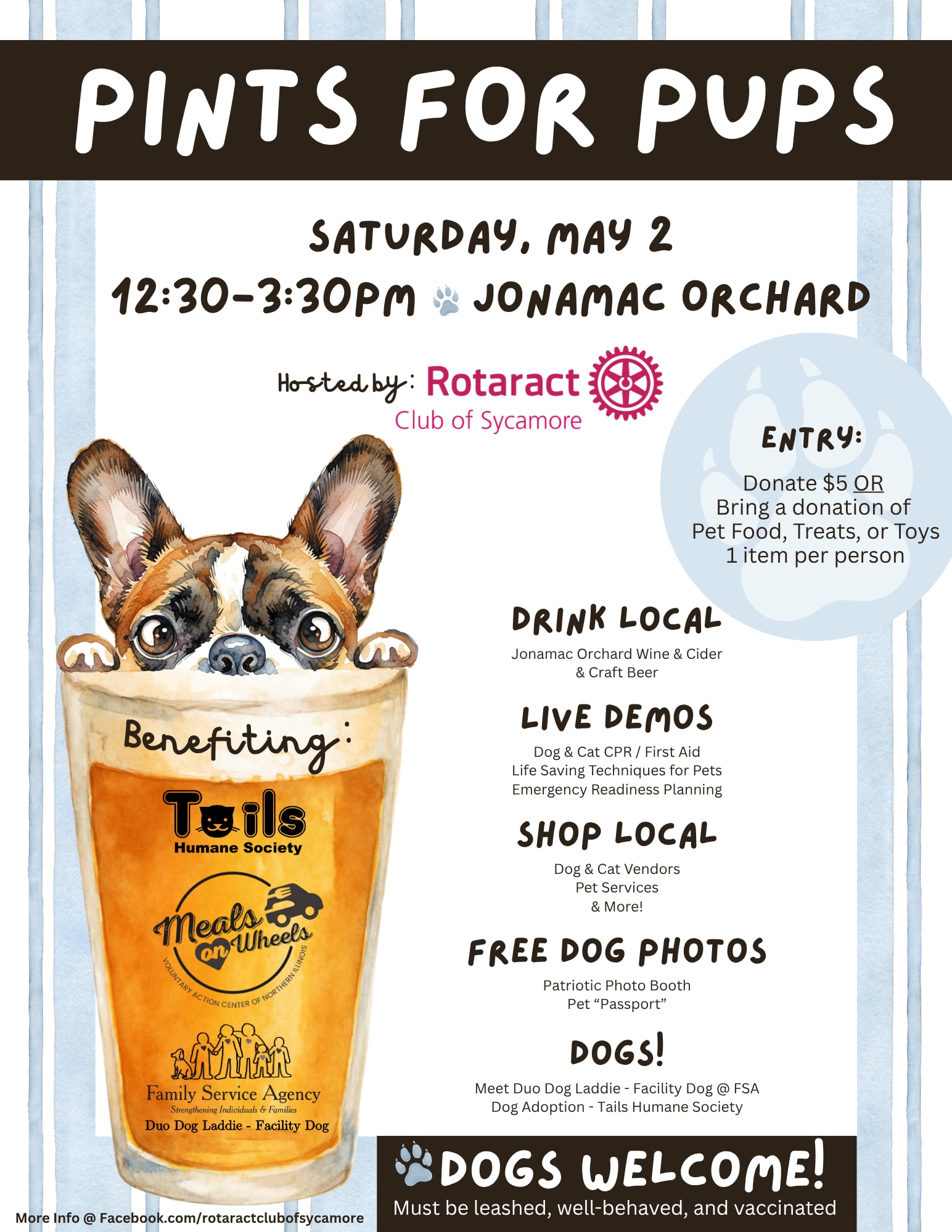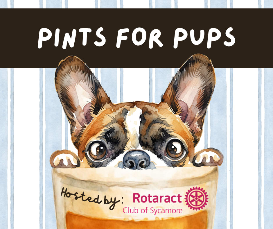 Join us for an afternoon of wagging tails, local sips, and community impact at Pints for Pups—hosted by the Rotaract Club of Sycamore!